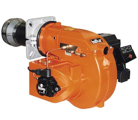 Brûleur à faibles émissions de NOx et CO selon la réglementation européenne EN267 : classe 2 Réglage de la tête de combustion. Prise d’air comburant avec clapet à papillon. Réglage du débit de l’air: manuelle Entretien facilité grâce à la possibilité d’enlever le groupe de pulvérisation sans démonter le brûleur de la chaudière. Bride de fixation coulissante au générateur, pour adapter le dépassement de la tête aux différents types de générateurs de chaleur. Circuit d’alimentation du combustible composé d’une pompe à engrenages avec réglage de la pression, de vannes d’interception et d’une vanne de sécurité. Contrôle de la présence de flamme par photorésistance.